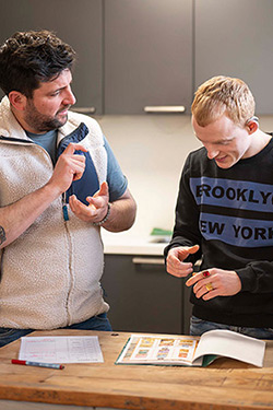 Bijna alle begeleiders spreken gebarentaal als eerste taal. Dat maakt communiceren een stuk eenvoudiger (en leuker). Het zorgt voor herkenning, vertrouwen en duidelijke communicatie.